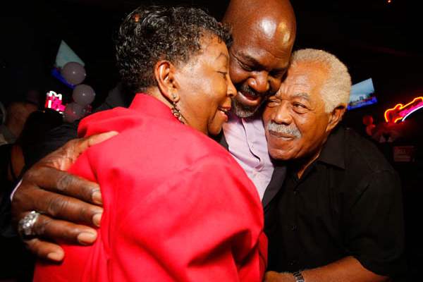Mayor Mike Bell celebrates winning the primary election with his parents Ora M. Bell and Norman A. Bell Sr.