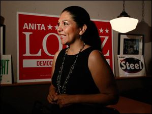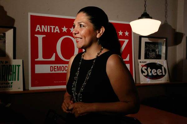 Anita Lopez speaks to the media on election night at Michael's Bar & Grill on September 10, 2013.