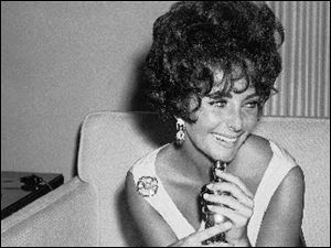 In this April 19, 1961 file photo, actress Elizabeth Taylor holds the Oscar she won as 1960's best film actress for her role in "Butterfield 8," while speaking with reporters in Hollywood, Calif.