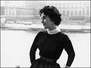 In a June 10, 1950 file photo, actress Elizabeth Taylor is shown on her arrival from Paris to London, at the Savoy Hotel.