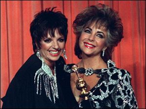 Liza Minelli, left, hugs actress Elizabeth Taylor, who holds her Cecil B. DeMille award in Beverly Hills, Calif., in this Jan. 27, 1985 file photo.
