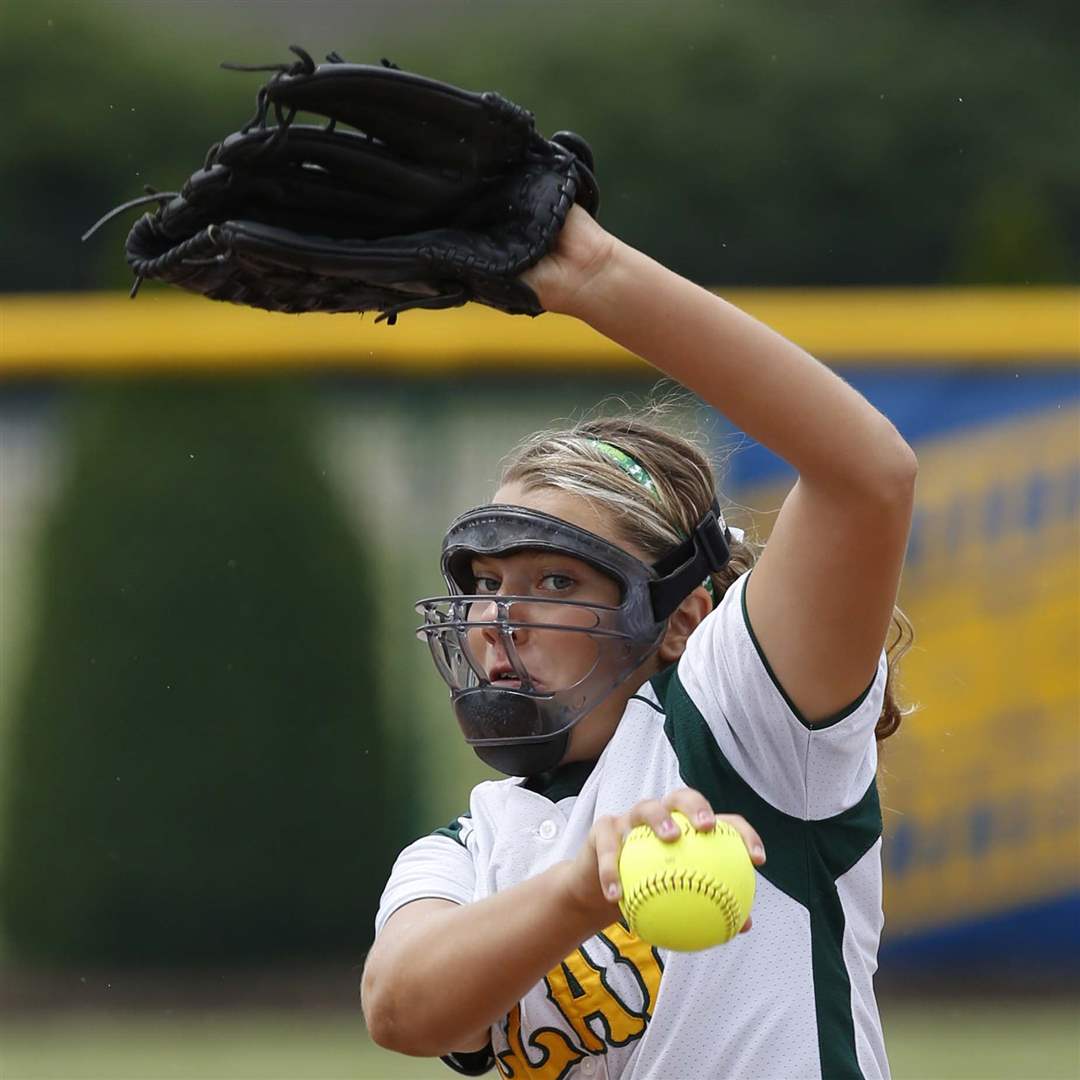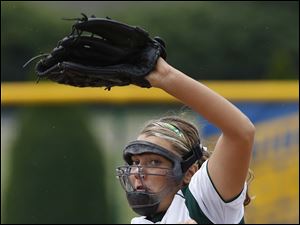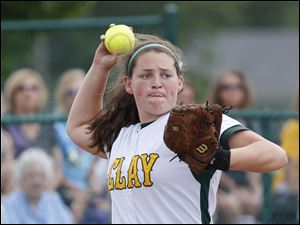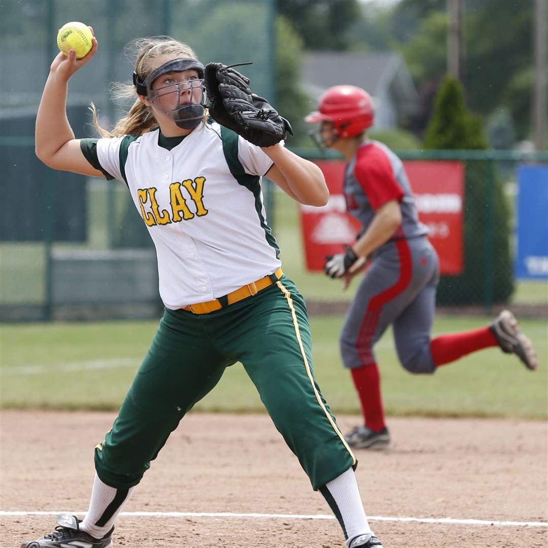 Oregon Clay pitcher Brooke Gallaher throws against Elyria.