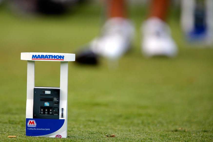 Gas pump tee boxes adorn each hole at the Marathon Classic presented by Owens Corning and O-I at Highland Meadows Golf Club.