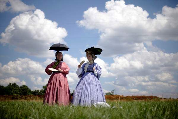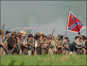 Tripp McMillan of the Overland Park, Kan., portraying a Confederate soldier in the 9th Texas Infantry, eyes the field Pickett's Charge.