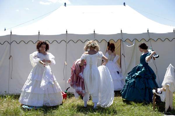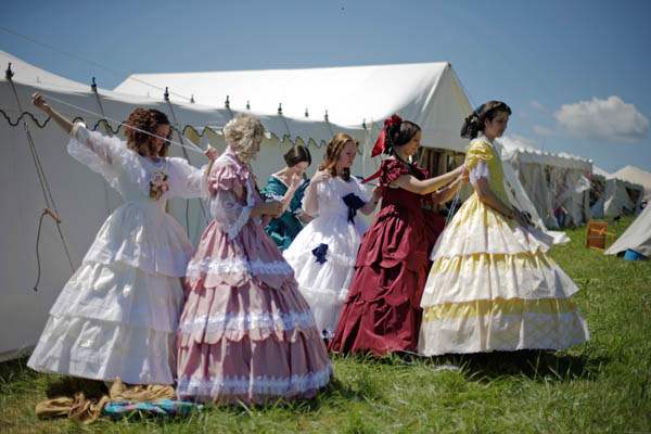 Spectators view a demonstration of a Confederate field hospital by Floridians portraying the 1st N.C. Infantry.