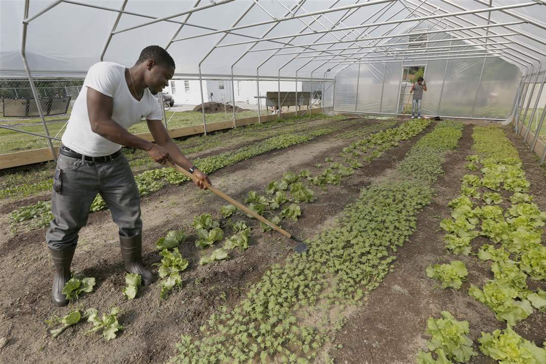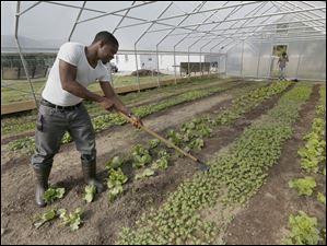 Grad student Ekpefon Umoren works in the new student-run business called Findlay Greens at the University of Findlay in Findlay, Ohio.