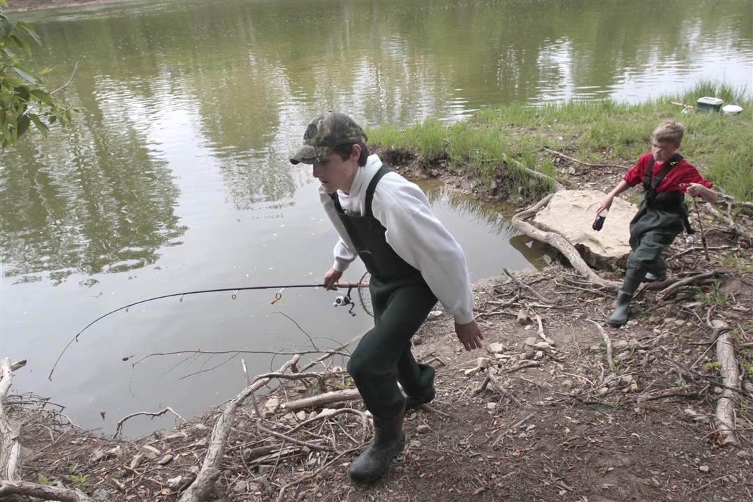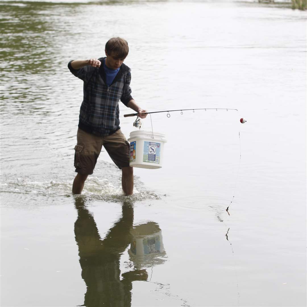 Perrysburg senior John Kosmyna, 18, participates in the fishing tournament in the Maumee River at Sidecut Metropark in Maumee, Ohio.