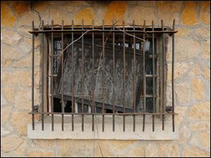 A barred window at the former Toledo House of Correction near Whitehouse.
