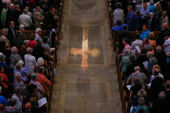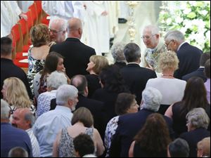 Family members say goodbye to Auxiliary Bishop Robert Donnelly.