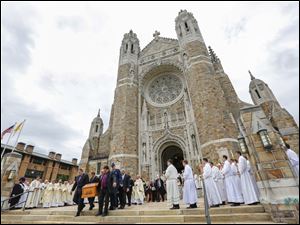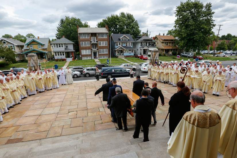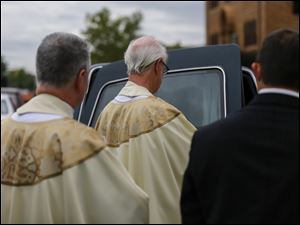 CTY Donnelly29 Auxiliary Bishop Robert Donnelly is loaded into a hearse at Our Lady, Queen of the Most Holy Rosary Cathedral, Tuesday, July 29, 2014. THE BLADE/ANDY MORRISON
