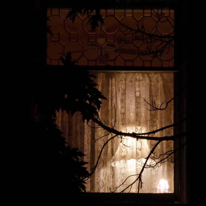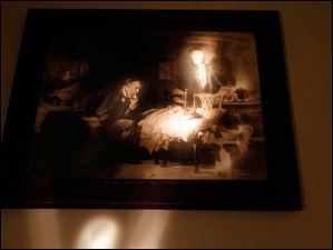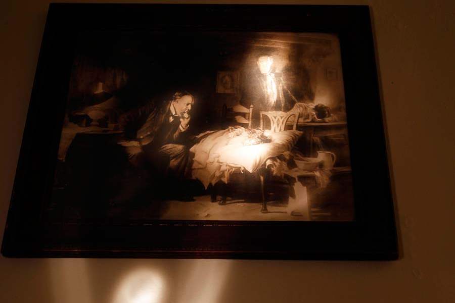 A picture illuminated by a flashlight in the room in the Mansion View Inn.