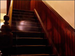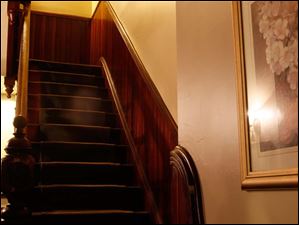 The hallway in the Mansion View Inn in the Old West End. The three-story mansion features 18 rooms, six and a half bathrooms, six fireplaces, and more than 75 windows.