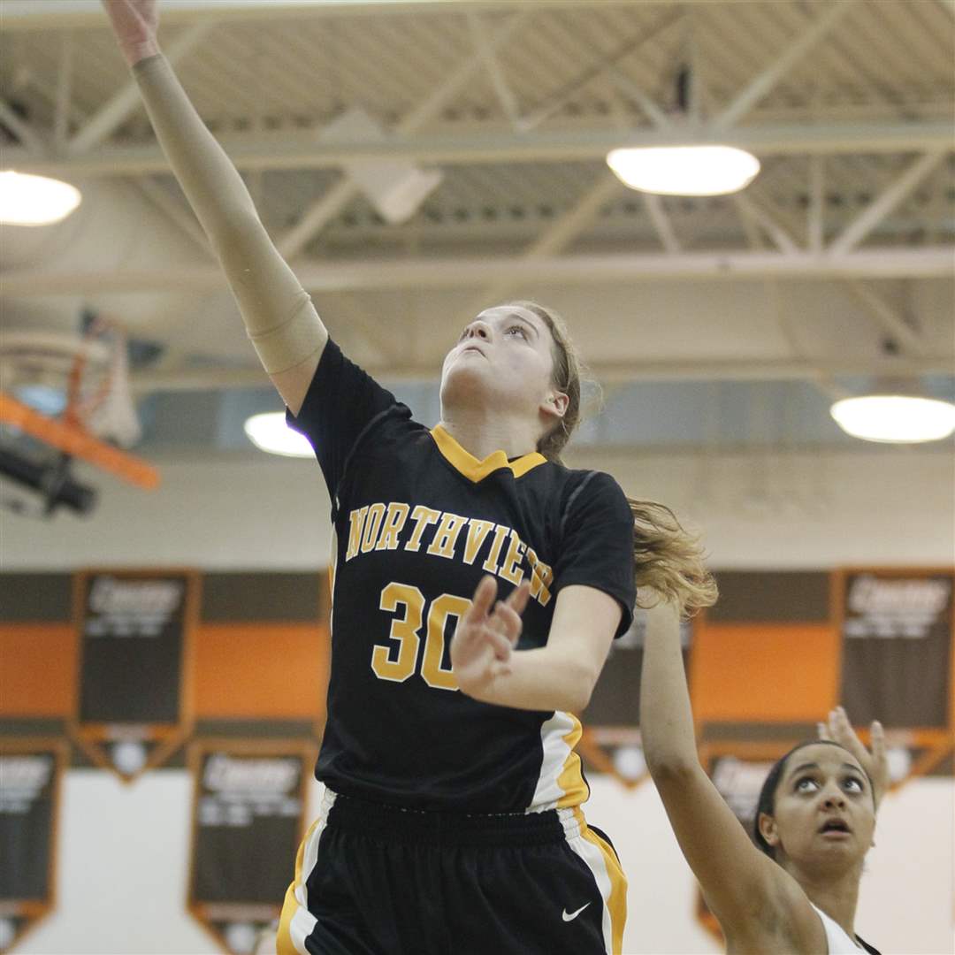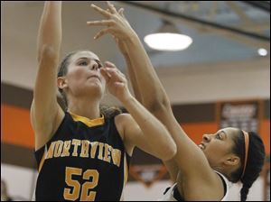 Northview's J.J. Jessing (52) goes to the net against Southview's Cierra Coleman (40) Saturday, in Sylvania, Ohio.