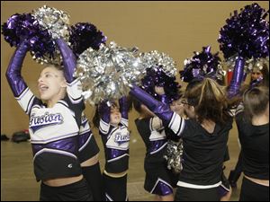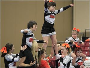 Sparklers cheerleaders Alvin Gibson, left, Izzie Vandyke, and Kayliegh Long, 6, all of Toledo. Sparklers is a special needs team from CheerWorks Sparks of Toledo.