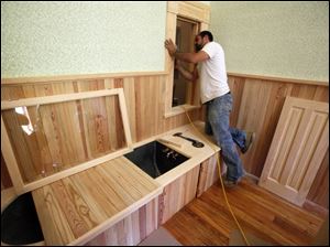 Daniel Szymanowski of Decker Woodworking puts final touches on the "inner sanctum" room at the Rutherford B. Hayes Presidential Center. The restoration was an attempt to make the first floor of the house look as much as it did when President and Lucy Hayes lived there.