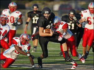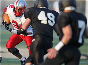 Bowsher's Dashan White (2) runs the ball against Perrysburg.