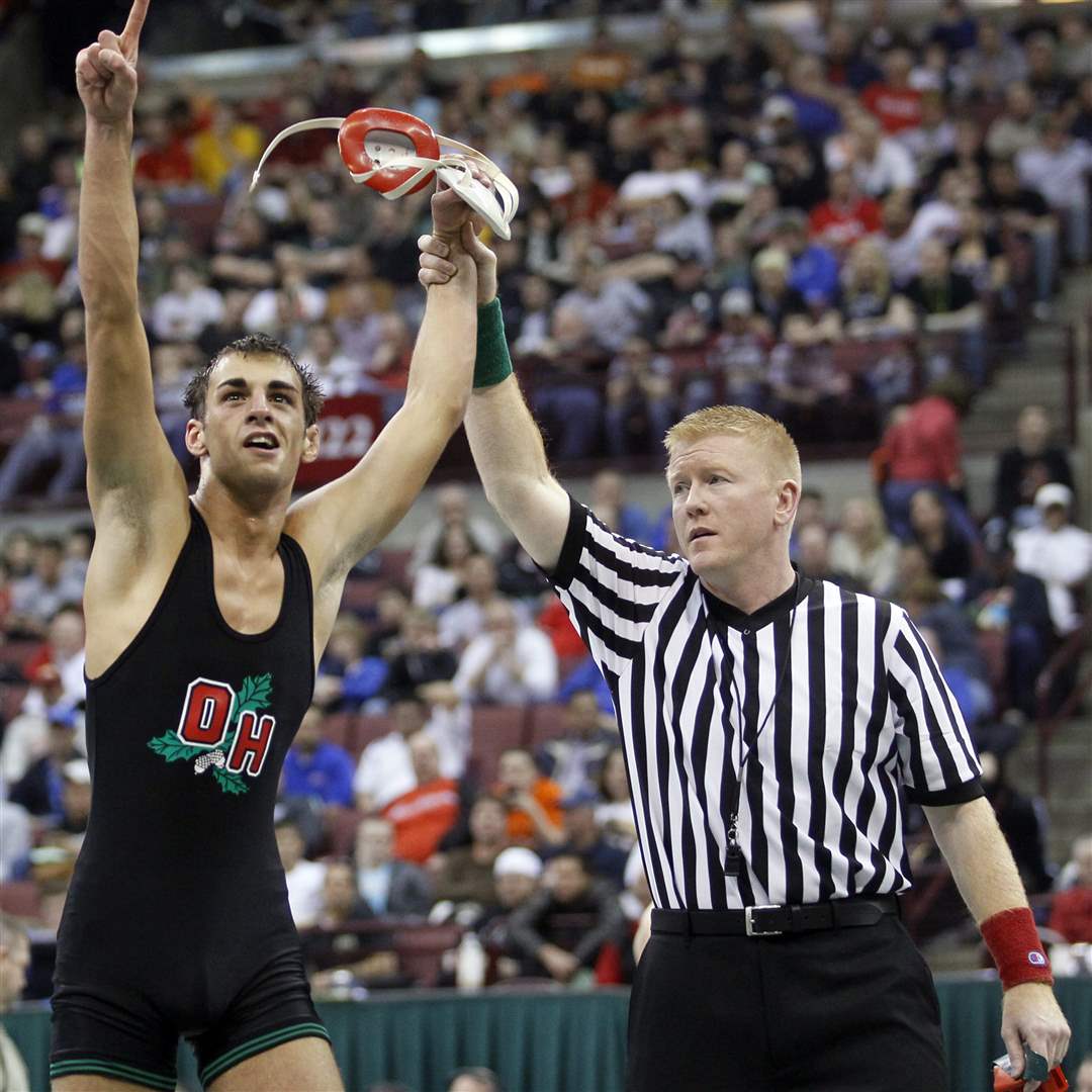 Tyler Hackworth of Oak Harbor defeats Robby Reed of Canfield in the Division II 125 pound championship match.