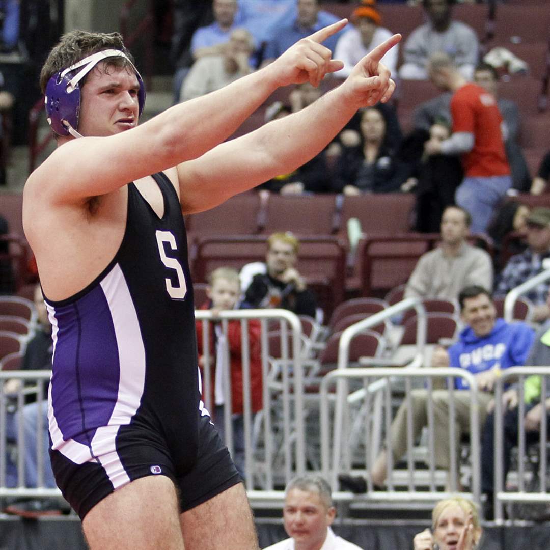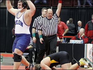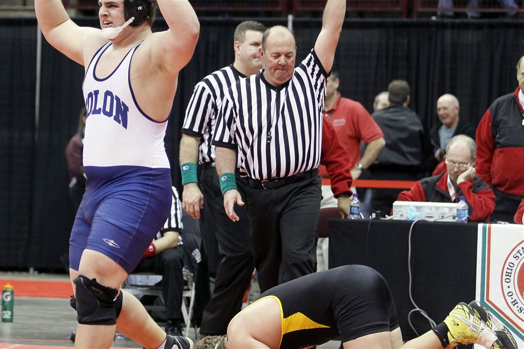 Mimmo Lytle of Swanton defeats Clint Endicott of Ashland Crestview in the 285 pound Division III championship match.