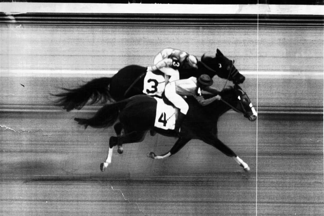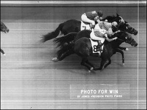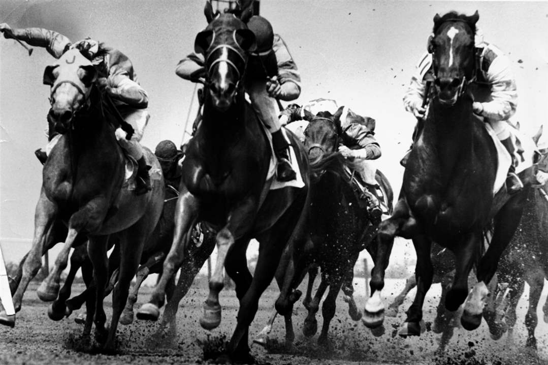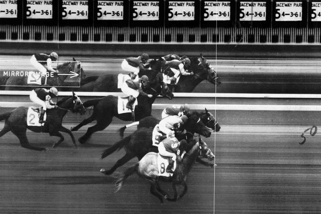 With hundreds, thousands and even hundreds of thousands of dollars on the line, a photo to determine the order of horses finishing the race can be critical, like this April 4, 1961, photo finish at Raceway Park.