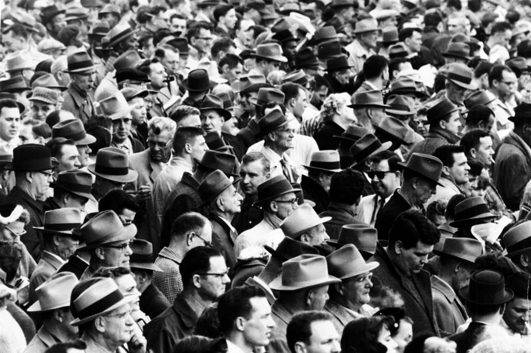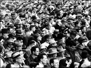 Spectators stand shoulder to should at Maumee Downs on April 6, 1959. The track was on what would become the playing field for Toledo's Triple-A baseball team, the Mud Hens, at Ned Skeldon Stadium.