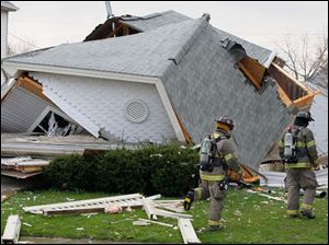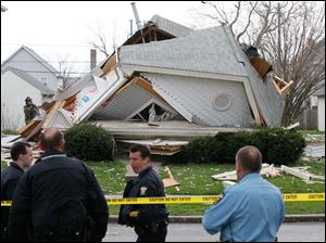 Toledo police and fire departments on the scene of a house in the 1400 block of Huron Street that collapsed.