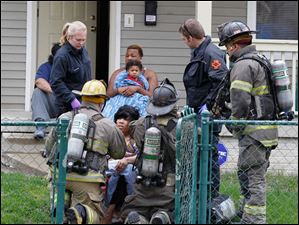 Toledo fire and rescue personnel attend to an Kizzie Smith, a neighbor of the house in the 1400 block of Huron Street, that collapsed.