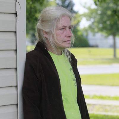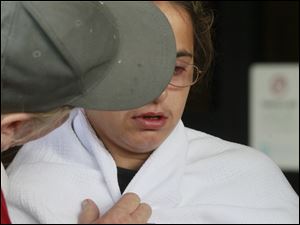 Anna Angel, the mother of the five children that were killed in addition to her boyfriend, is comforted by family while coming out of Mercy Hospital in Tiffin.