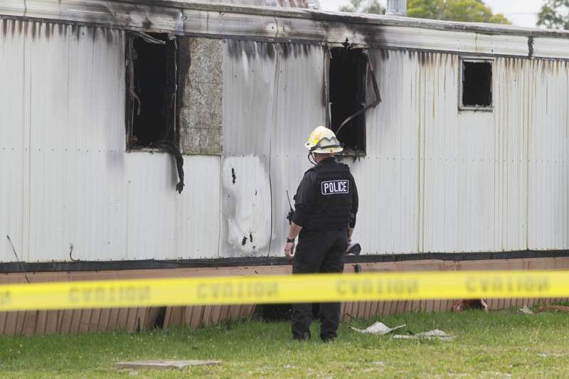 Wm. Timothy Spradlin, Chief of the Fire & Explosion Investigation Bureau with the Division of the State Fire Marshal, investigates the scene.