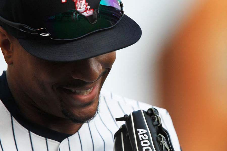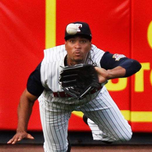 Toledo center fielder Ezequiel Carrera makes a catch deep in the outfield.