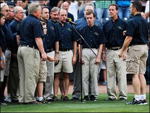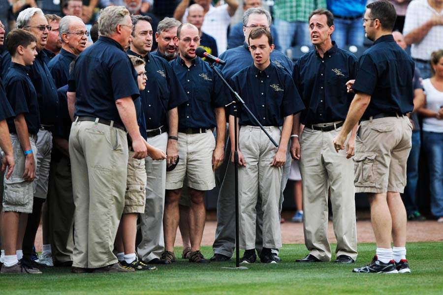 The Voices of Harmony sing the national anthem before the game the Toledo Mud Hens game against the Norfolk Tides.