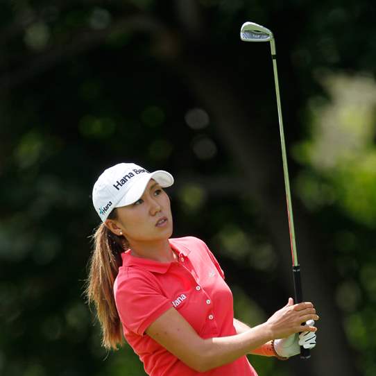 Hee Kyung Seo heads behind a tree to find her ball on the 10th hole.