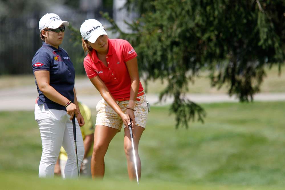 I.K. Kim, left, and Jiyai Shin approach the 4th green.