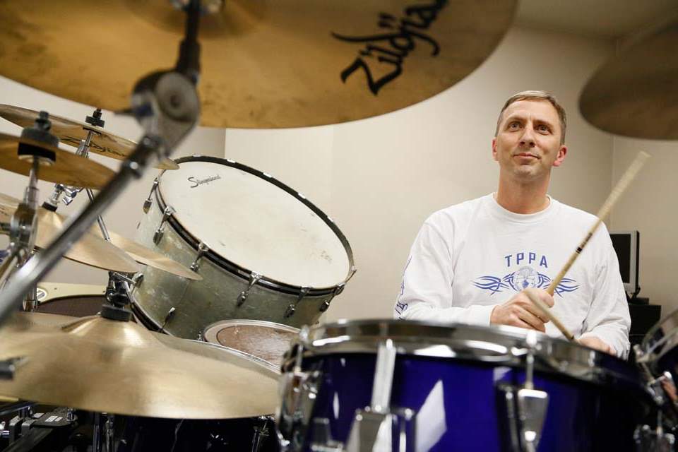 Judge Michael Goulding of Jingle Balls, a rock band comprised almost exclusively of members of the local bar and bench, as well as court and clerk employees, rehearses Tuesday.