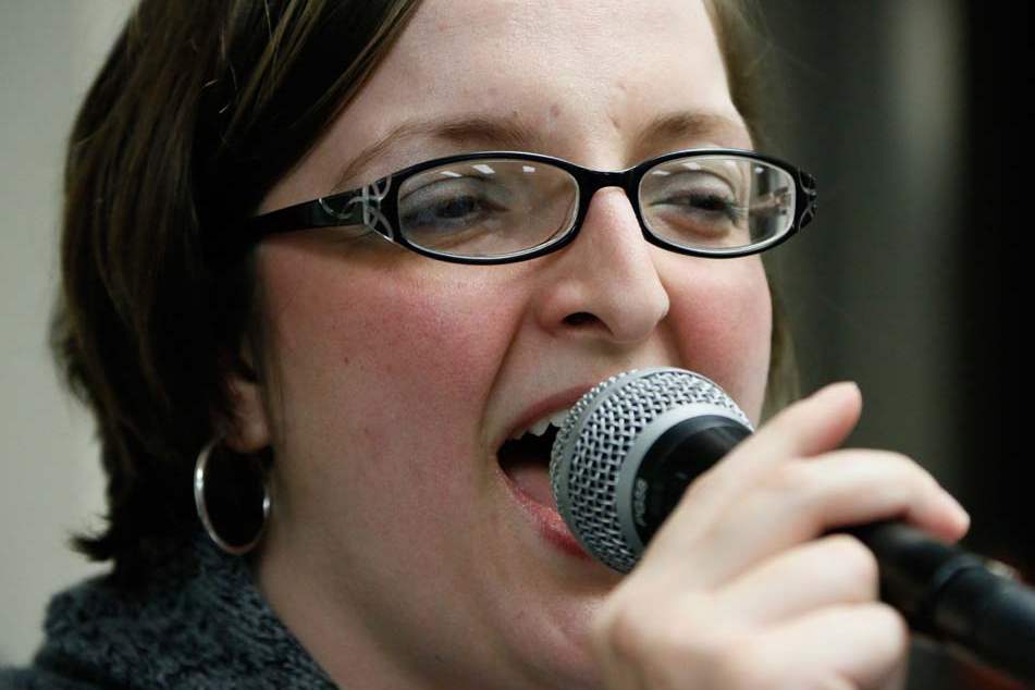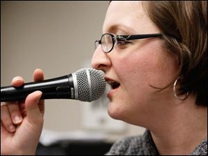 Stephanie Williams of Jingle Balls, a rock band comprised almost exclusively of members of the local bar and bench, as well as court and clerk employees, rehearses Tuesday.