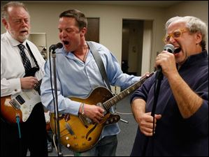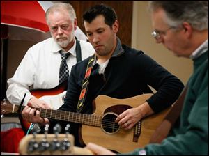 Left to right Marty Mohler, Tom Puffenberger, and John Rozic of Jingle Balls, a rock band comprised almost exclusively of members of the local bar and bench, as well as court and clerk employees, rehearse Tuesday.