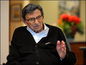 Former Penn State football coach Joe Paterno gestures as while interviewed at his home in State College, Pa. In his first public comments since being fired two months ago, Paterno told The Washington Post he "didn't know which way to go" after an assistant coach came to him in 2002 saying he had seen retired defensive coordinator Jerry Sandusky sexually abusing a boy.