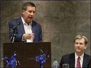 Kasich speaks at the Lucas County Republican Party Lincoln Day Dinner at the Premier Banquet Hall. Lucas County Republican Party Chairman Jon Stainbrook is at right.