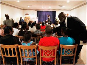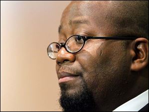Toledo Mayor Mike Bell pays his respects before a funeral for Keondra Hooks.