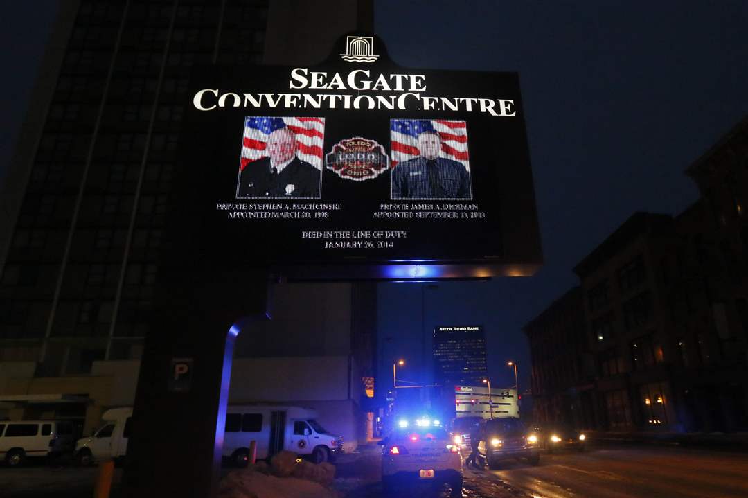 The casket of Toledo firefighter Stephen A. Machcinski is carried into the SeaGate Convention Centre.