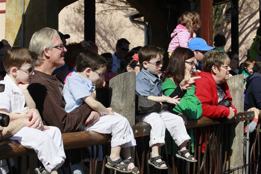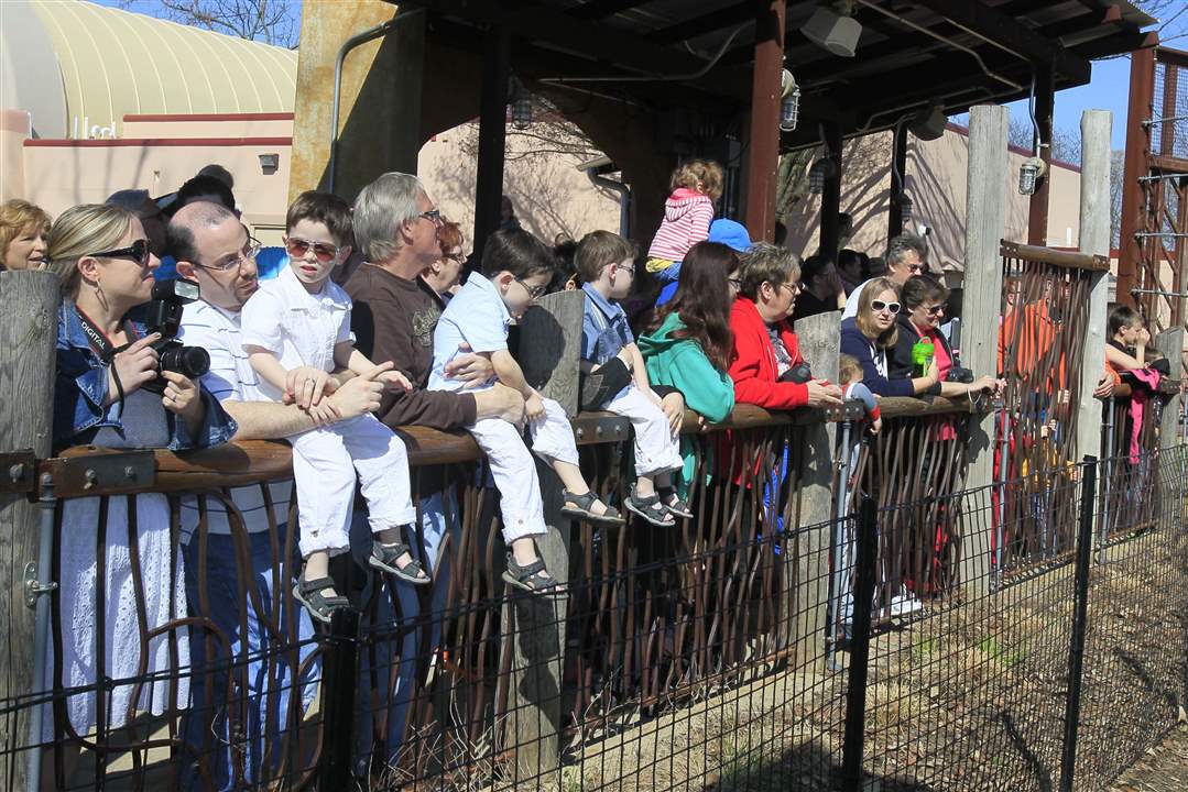Crowds watch as Louie and Twiggy devour Louie's birthday gift.