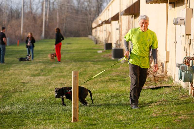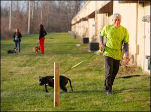 Volunteer Bill Armaline of Maumee trains his foster dog, "Jelly Bean."