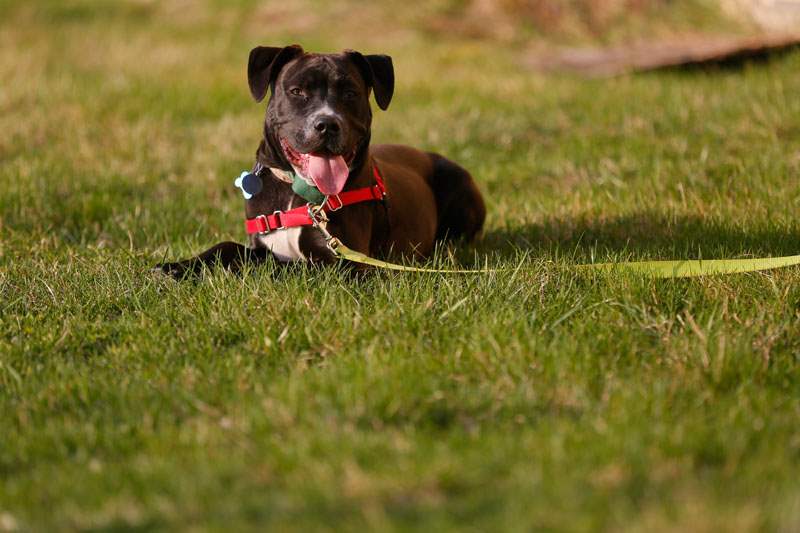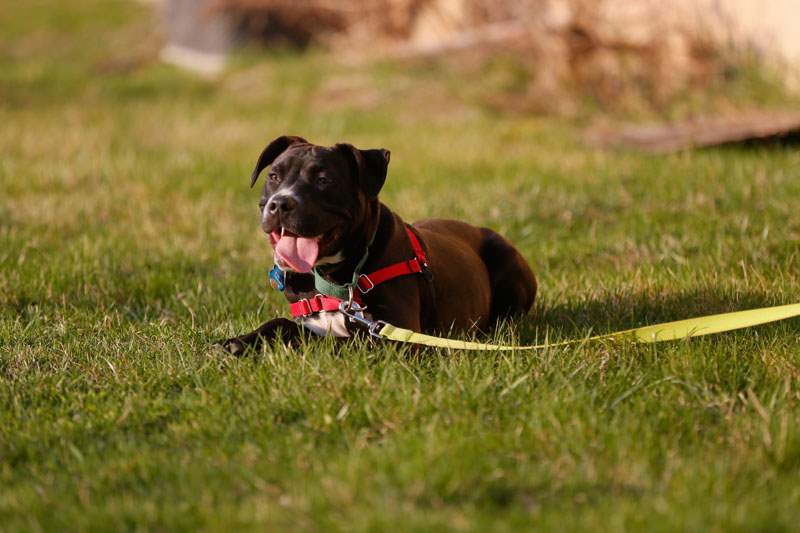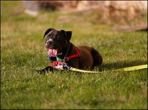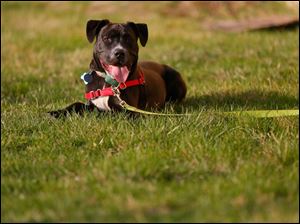 "Jelly Bean," a "pit bull" mix, enjoys the yard in back of the The Lucas County Pit Crew's new Training and Adoption Center in Toledo.