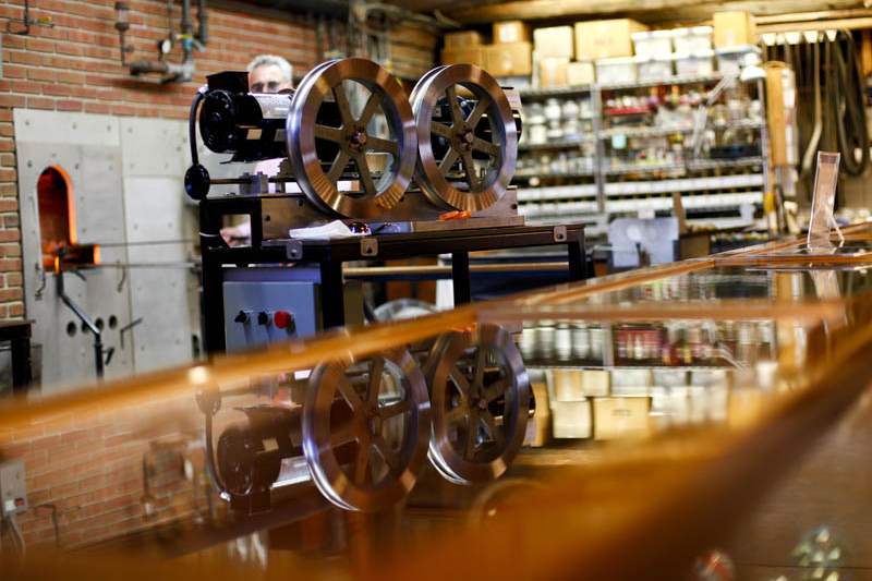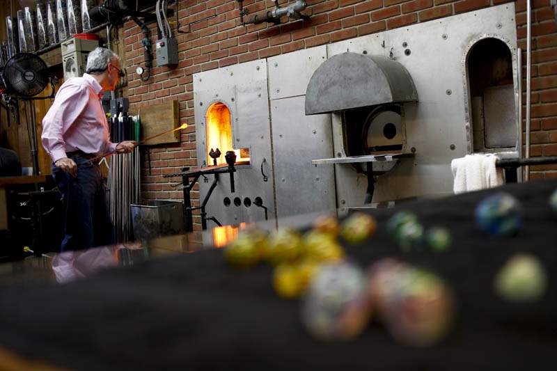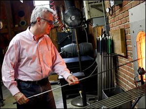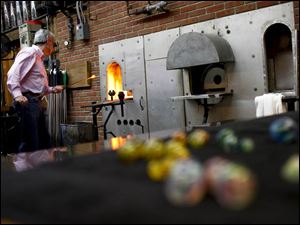 Glass artist Mark Matthews of Wauseon heats up glass in the furnace.