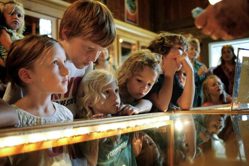 From left, Rosie Kelly, 6, Clyde Kelly, 10, Penny Kelly, 5, and Aubrey Wilhelm, 6, watch during a demonstration. The group was visiting from Spring Lake, Mich.
