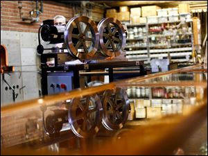 A modern reproduction of the first mechanized sphere making machine made by John McCormick of St. Louis.