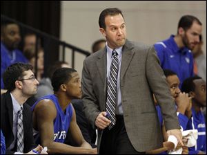 Buffalo assistant coach Kevin Heck, a Rossford native, Saturday, at the Stroh Center.
