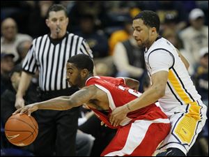 University of Toledo guard Rian Pearson (5) takes against Miami forward Julian Mavunga (4).