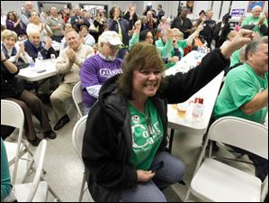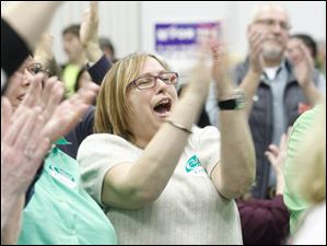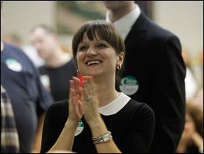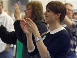 Supporter Lidia Ebersole applauds D. Michael Collins during his acceptance speech.