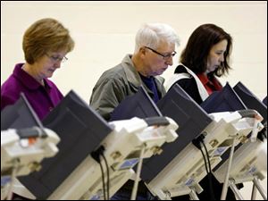 Terrie Weiss, from left, Jim Weiss, and Laurie Flowers vote.