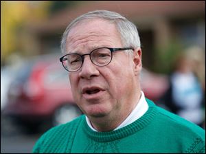 CTY collinsvotes06p Toledo mayoral candidate D. Michael Collins and his wife, Sandra Drabik, his wife, leave the polling place at Church of the Cross on Cass Road, after voting on election day, Tuesday, November 5, 2013. The Blade/Dave Zapotosky